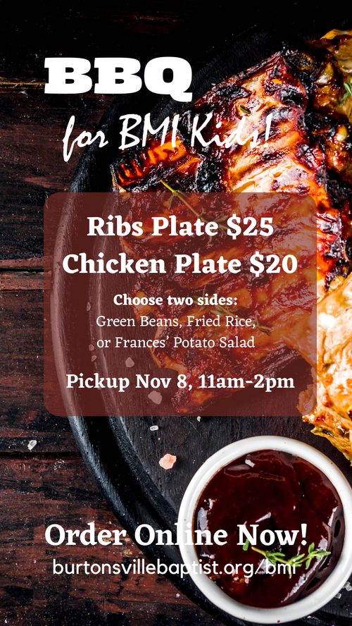 Those of us local to the Burtonsville and surrounding areas enjoy a special way to help the kids at BMI each year: EAT BBQ!
